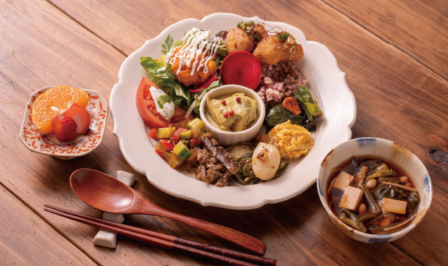 健康と美容を考えた究極の菜食丼「様時のブッダボウルランチ」が人気。20食限定なのでお早めにお越しください。